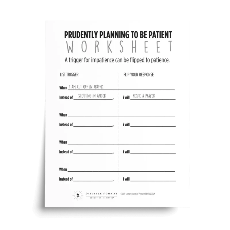 When you know something triggers your temper, you can plan ways to respond with patience. This worksheet is an unbeatable tool to keep in your back pocket in helping yourself and others to learn patience.